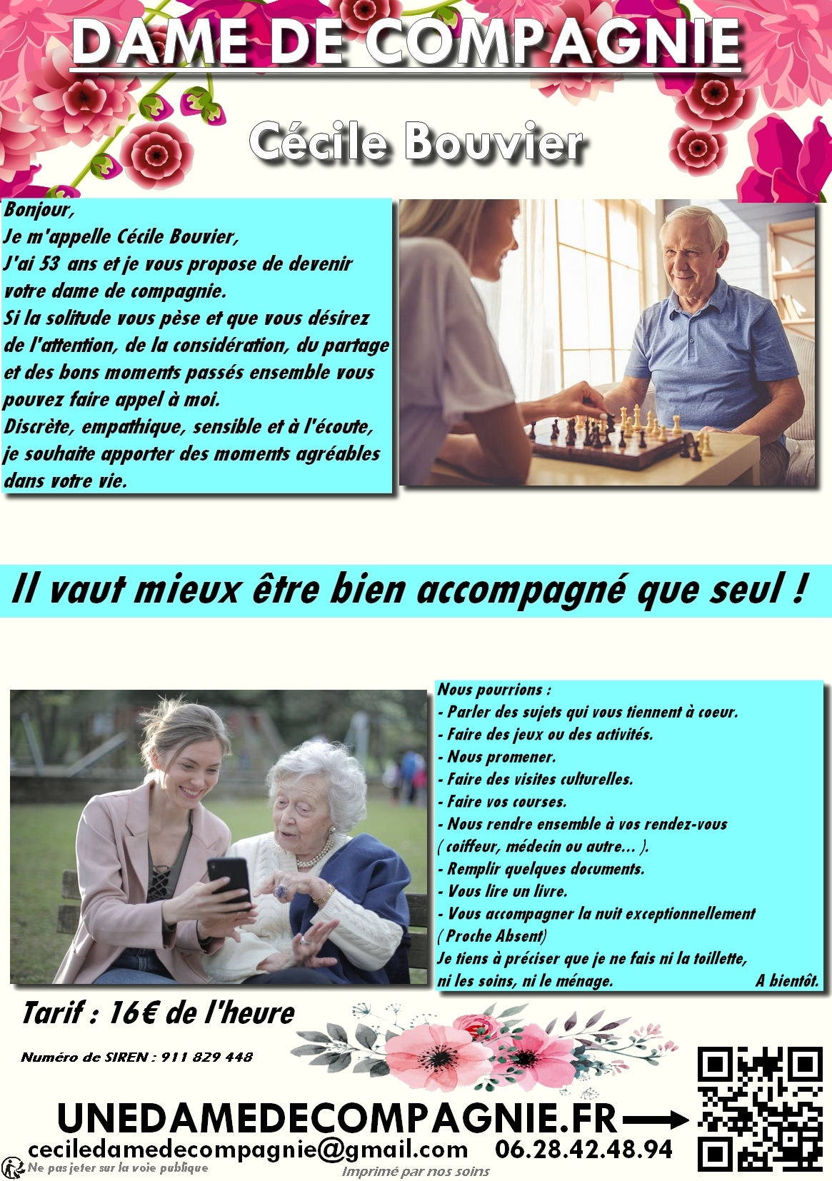 Je vous propose de devenir votre dame de compagnie ou celle d'un de vos proches.